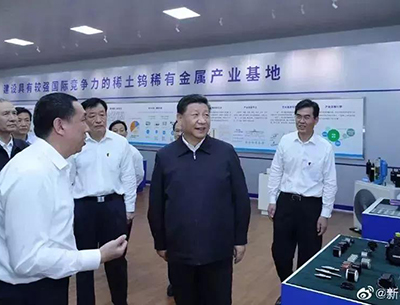 习近平总书记5月20日在江西赣州考察调研时强调:稀土是重要的战略资源,也是不可再生资源。要加大科技创新工作力度,不断提高开发利用的技术水平,延伸产业链,提高附加值,加强项目环境保护,实现绿色发展和可持续发展。