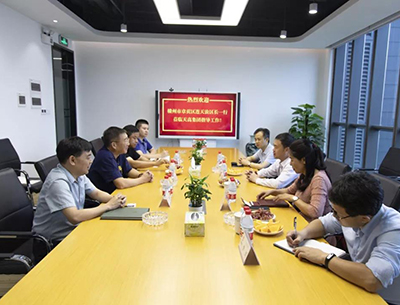 5月23日上午,江西省赣州市章贡区区委副书记、区长连天浪,区政府办主任李兴,区商务局局长刘炜,区工信局局长曾小英一行4人莅临天高集团指导工作,集团董事长、总裁李平,常务副总裁张筱鸿,财审部经理杨运伟,总裁办主任陈飞与连天浪区长一行座谈交流。