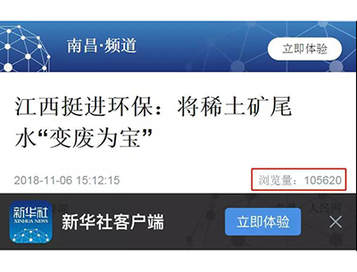 近日,新华社、人民网等媒体对天高集团江西挺进环保有限公司龙南项目进行报道,介绍挺进环保公司采用自主研发的双级渗滤耦合技术,有效治理稀土矿山尾水污染,切实改善流域周围群众用水问题与下游用水安全,为江西省委、省政府实现消灭劣V类水的工作目标做出有力的贡献。该新闻的阅读量已超10万。